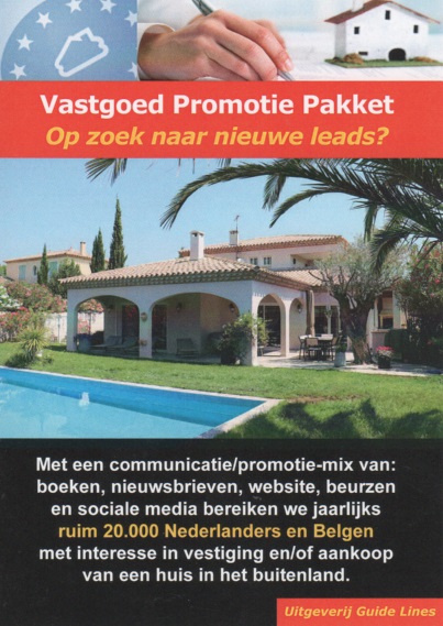 Maak gebruik van het Vastgoed Promotie Pakket van uitgeverij Guide Lines; Vraag naar de mogelijkheden : guidelines@planet.nl (o.v.v. vastgoed promotie pakket particulieren)